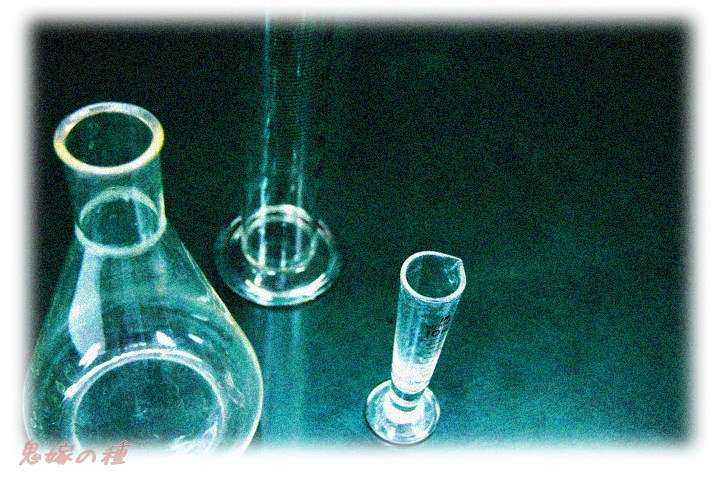 丸フラスコの中に水を半分ぐらい入れ、長いガラス管のついたゴムせんをはめこみ、