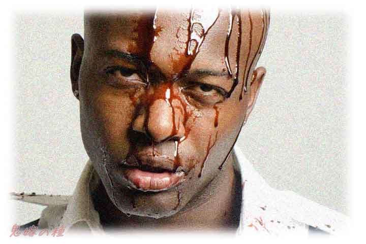 と、入れ違いざまに、顔面血だらけの若い男が、