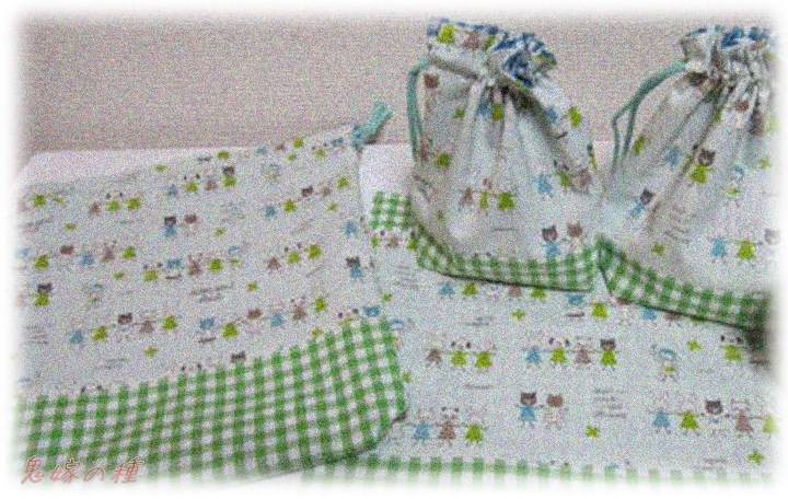 義兄嫁さんからの依頼もあり通学サブバッグ・上履き入れ・体操着入れ・防災頭巾etc…