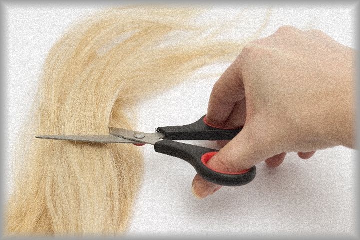 音で気付かれないようにわざわざ小さめの鋏で。