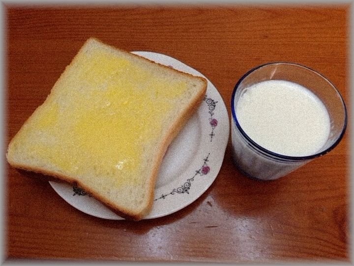 というので焼いてマーガリン塗って牛乳と出しました。