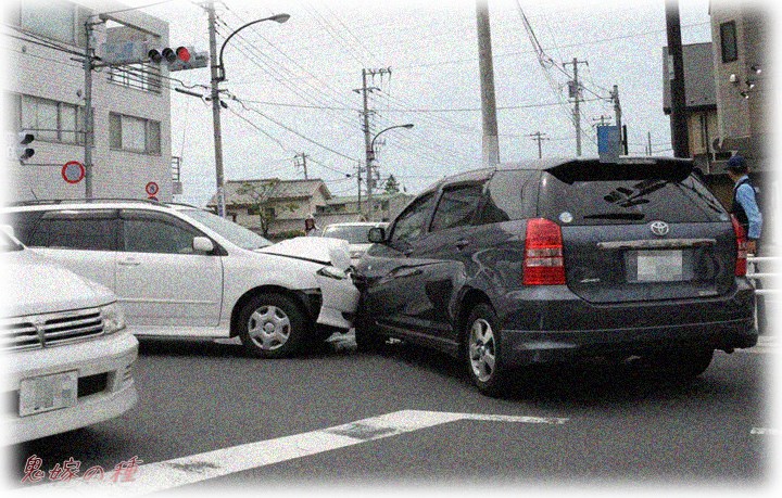 青信号を進んでたら、左から信号無視した車に体当たりくらった!