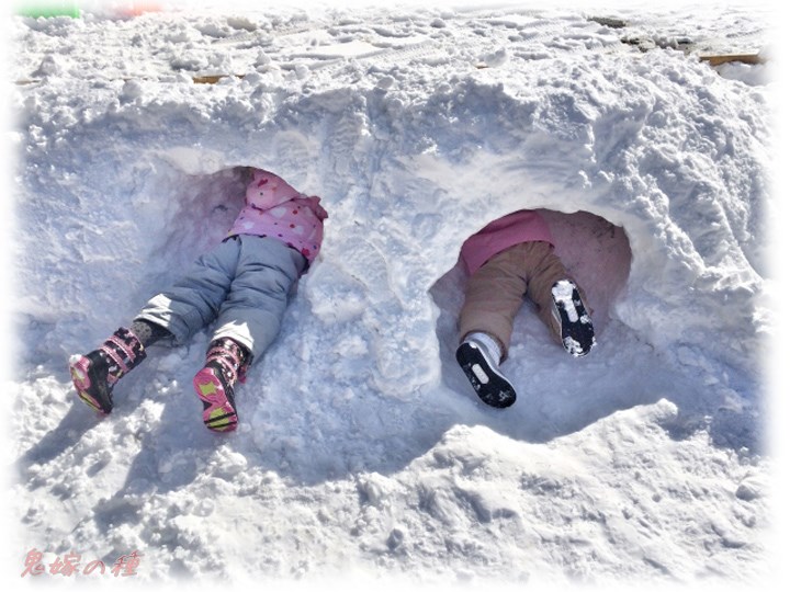 この地域で積雪は珍しくて、大はしゃぎ。