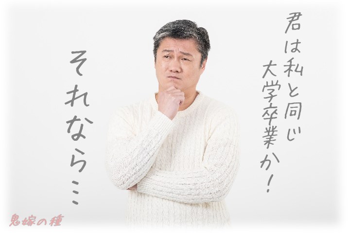 「君はどこ大学かね?おぉ、私と同じ大学か。なら