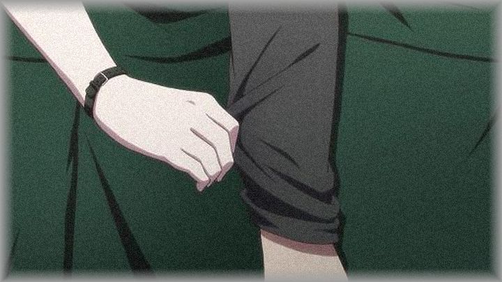 彼の服の裾をぎゅーっと握って離さない。
