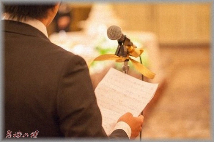 披露宴の途中でその一人が祝辞を述べることに。