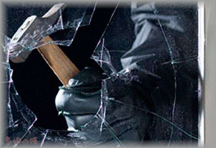 ある晩家のソファーで寛いでたら、いきなりソファー横にあるガラス扉が割られる。