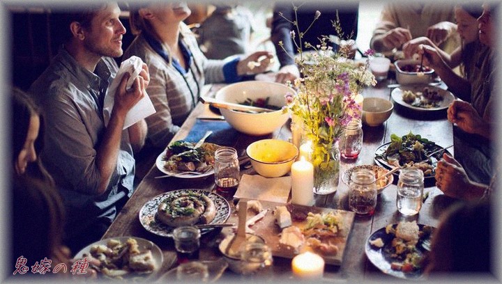 客や義両親やらと一緒にどっかり座って飲んで食べる。