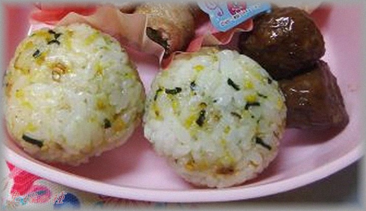 ・ご飯(ちっちゃいおにぎりにして野菜ふりかけかけた)