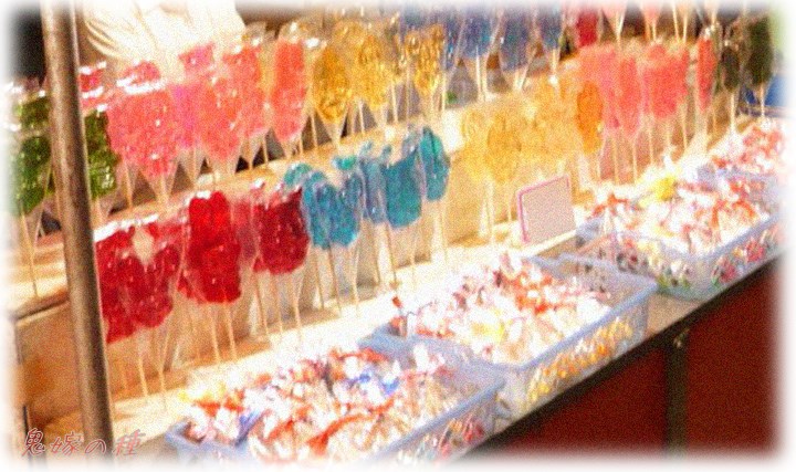 色付きガラスの様なべっ甲飴とむせ返る様な飴の甘い匂いにわくわくしました。