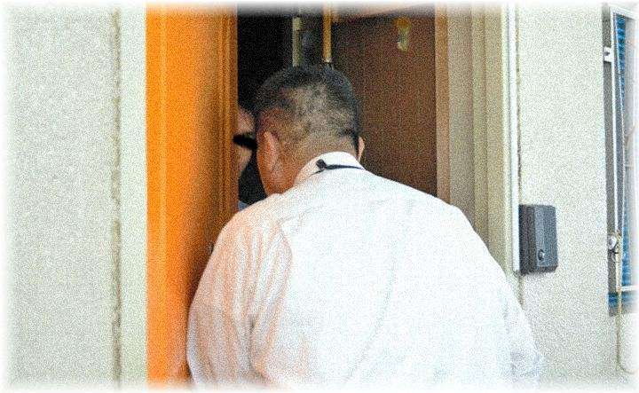 誰だろと思って覗き穴から見てみると見知らぬおっさんが。
